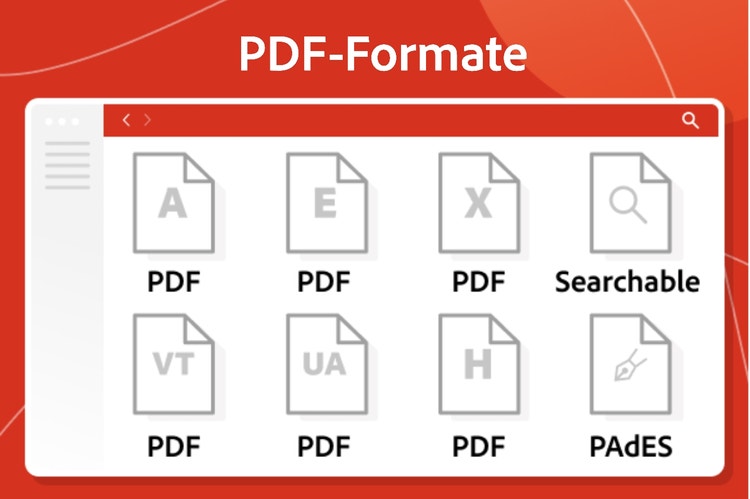 Neben dem Standard PDF-Format gibt es noch weitere Formate, darunter PDF/A, PDF/E, PDF/H, PDF/UA, PDF/X, PDF/VT, PAdES und durchsuchbare PDFs. Die Standards wurden speziell für unterschiedliche Zwecke entwickelt und bieten je nach Verwendung verschiedene Funktionen und Vorteile. PDF/A eignet sich z. B. für die Langzeitarchivierung, PDF/UA ist ein Standard für barrierefreie Dateien.