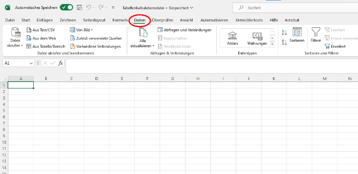 - Starte Excel und gehe im Menü auf den Tab "Daten".