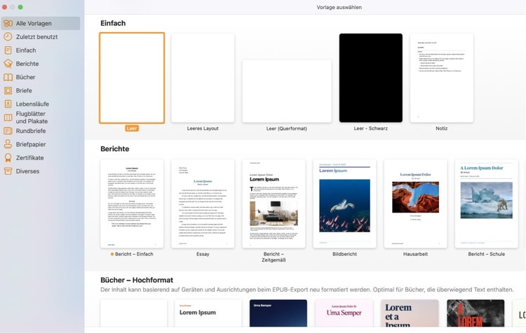 In Apple Pages findest du zahlreiche Vorlagen für verschiedene Arten von Dokumenten.