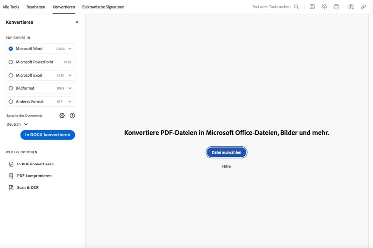 Mit den Onlinetools von Adobe ein PDF in Word umwandeln