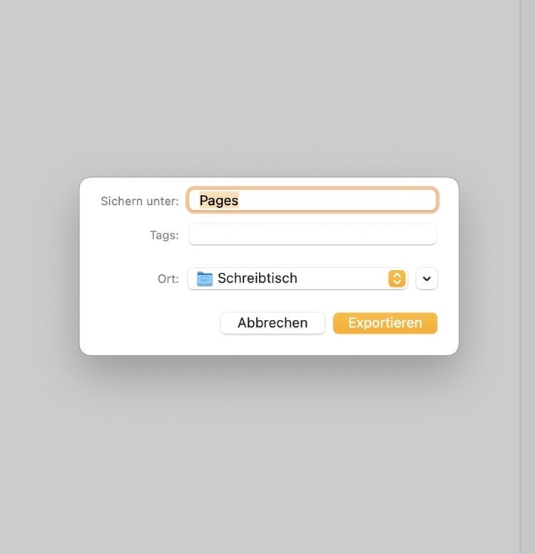Hinweis: Einige Pages-spezifische Formatierungen können in der Word-Datei verloren gehen. Prüfe deshalb das Dokument nach der Konvertierung und nimm bei Bedarf Anpassungen vor. Darüber hinaus kann sich der oben beschriebene Prozess je nach der verwendeten Pages-Version leicht unterscheiden.