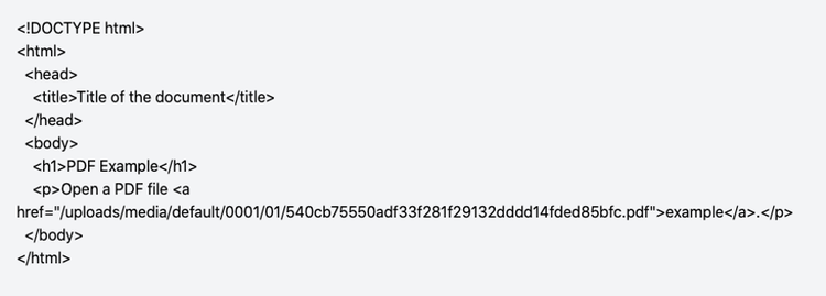 - Füge deine PDF mit dem Tag <a> und dem Referenzlink ein.