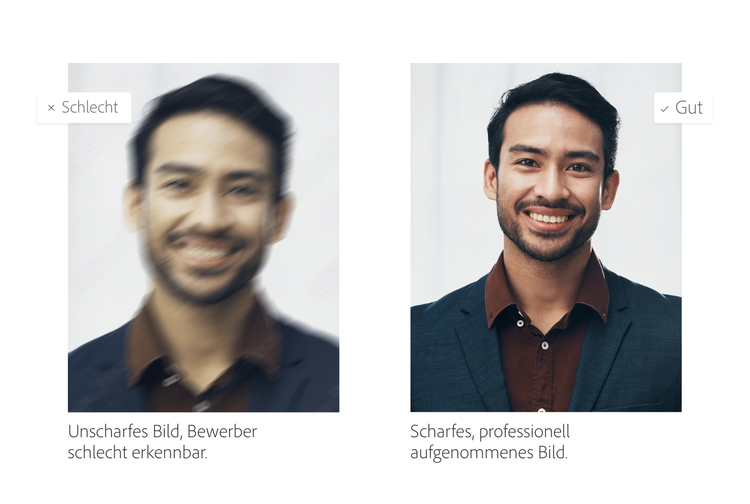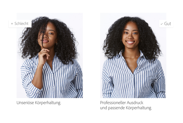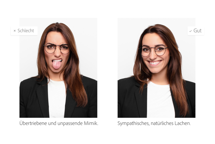 Für dein Online-Profil auf sozialen Netzwerken oder Job-Plattformen, wie z. B. Xing gilt: Lade ein professionelles, aktuelles Foto hoch, das in einer guten Qualität sowohl für die Ansicht am Desktop als auch als Ausdruck geeignet ist.