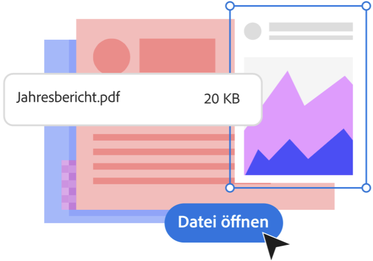 Mit den kostenlosen Onlinetools von Adobe kann jede*r Dateien über einen Webbrowser erstellen, bearbeiten, hochladen, speichern und konvertieren. Das erleichtert die Zusammenarbeit, unabhängig von Dateityp oder Dokument. Ziehe dafür einfach eine Datei in unser Onlinetool, um sie in eine PDF-Datei umwandeln oder aus einem PDF-Dokument in ein anderes Format zu konvertieren. Außerdem kannst du Dateien zusammenführen, zuschneiden, aufteilen oder bearbeiten. Anschließend kannst du Kommentare einholen, den Fortschritt verfolgen und dich mit deinem Team in Echtzeit abstimmen – ganz so, als würdet ihr zusammen in einem Büro sitzen.