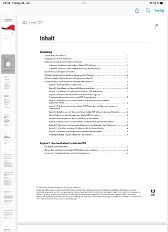 - Es werden dir nun die einzelnen PDF-Seiten in der Vorschau-Ansicht angezeigt. Zoome mit zwei Fingern in eine der Seiten, sodass sie auf dem gesamten Bildschirm angezeigt wird.