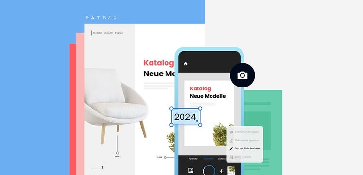 Mit der kostenlosen Adobe Scan App kannst du Dokumente einscannen und direkt in PDF-Dateien umwandeln. Diese kannst du im Anschluss mit Acrobat Web oder der Adobe Acrobat Reader App bearbeiten.