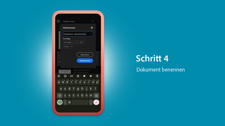 4. Benenne deinen Scan und speichere ihn als PDF oder JPEG