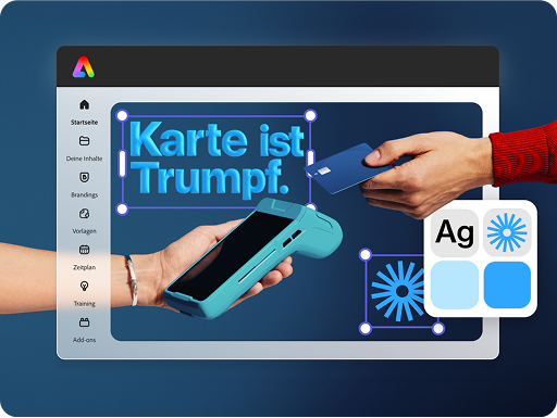 Markenkonforme Designs, Bilder und Illustrationen mit nur einem Klick – Brand-Kits2 für Fonts und Farben halten das ganze Team auf Kurs. Gesperrte Elemente sorgen dafür, dass alle mit den gleichen Versionen arbeiten.