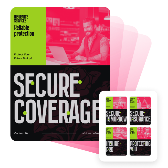 Gib einfach den gewünschten Stil oder Look ein – du musst nicht bei null anfangen. Ob knallig und neonfarben oder minimalistisch: Der KI-Generator bringt deine Flyer-Idee in Sekunden zum Leben. Falls das erste Design nicht passt, gib einen neuen Prompt ein, um weitere hochwertige Vorlagen zu erhalten.