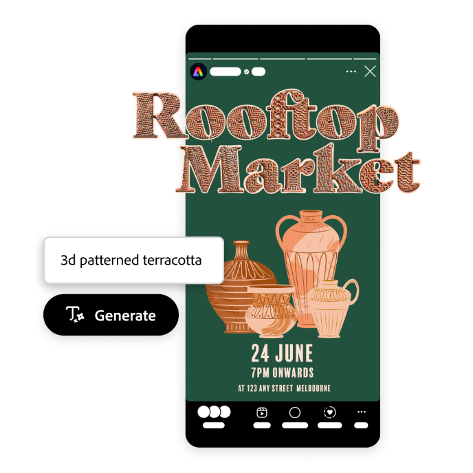 Verleihe deinem Titel mit einer Schrift, die sich von der Seite abhebt, den richtigen Pep. Gib eine einfache Beschreibung in den 3D-Text-Generator ein, beispielsweise „Lebkuchentextur“ oder „pinke Heliumballons“, und schon wird dein Text in wenigen Augenblicken formatiert.