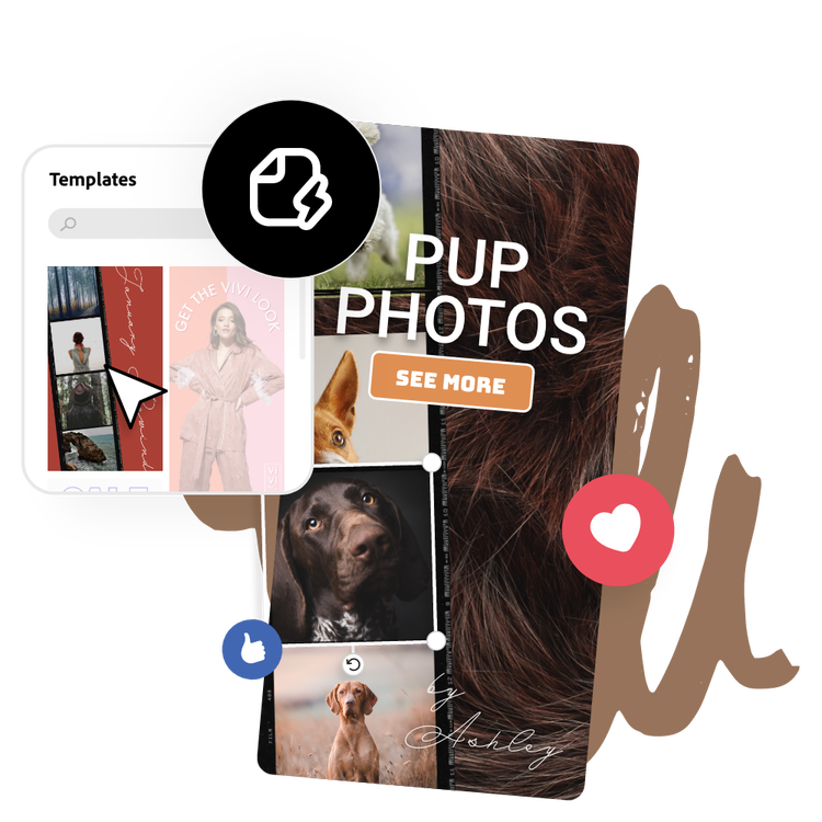 Entdecke professionell gestaltete Vorlagen, um dich inspirieren zu lassen, oder erstelle deine vertikalen Banner von Grund auf neu. Gestalte ein Konzept für dein Design, indem du Fotos, Icons, Logos, personalisierte Schriftarten und weitere individualisierbare Elemente nutzt, um dein Design deinem Stil authentisch anzupassen. Mit Adobe Express ist es einfach, deine Designs zu erstellen, zu speichern und zu teilen – in nur wenigen Minuten und völlig kostenlos.