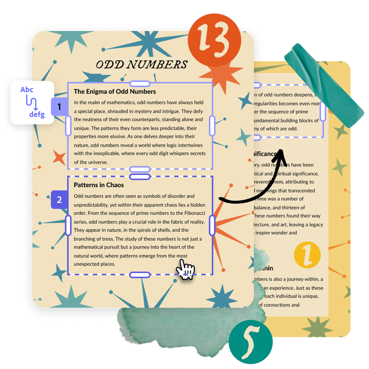 Füge Texte und Bilder schnell hinzu und ordne sie nach Belieben an – ganz ohne komplizierte Anpassungen. Lange Absätze lassen sich in Spalten unterteilen, damit dein E-Book übersichtlich bleibt. Mit den flexiblen Layout-Tools kannst du Textfelder verschieben und automatisch anpassen lassen, ohne dass aufwendige Nachbearbeitungen nötig sind.