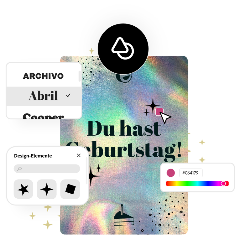 Du kannst deine Geburtstagskarten selbst gestalten oder auch professionell gestaltete Vorlagen entdecken, um deine Ideen zu verwirklichen. Lege ein Thema für deine Entwürfe fest und verwende Fotos, Symbole, Logos, personalisierte Schriftarten und andere individualisierbare Elemente. Mit Adobe Express kannst du deine Entwürfe innerhalb weniger Minuten kostenlos und einfach erstellen, speichern und freigeben.