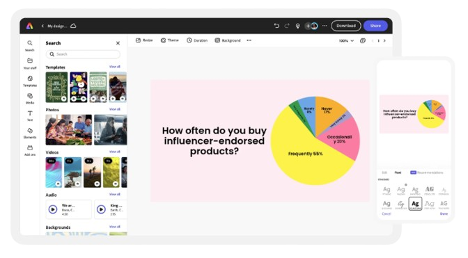 Präsentationen mit Tortendiagrammen um weitere Adobe Express-Assets ergänzen.