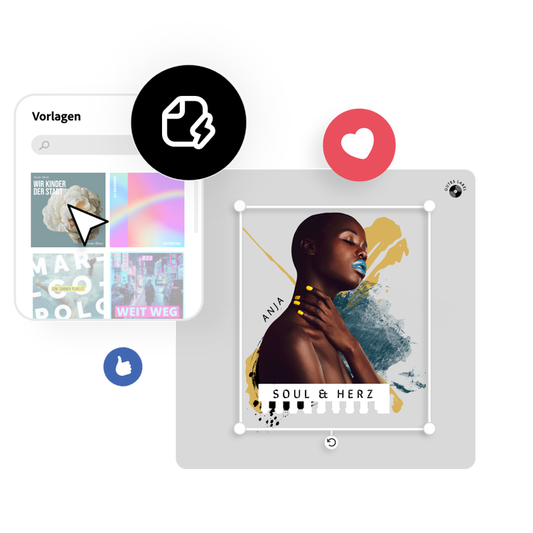 Mit Adobe Express ist es ganz einfach, ein Album- oder CD-Cover genau nach deinen Vorstellungen zu gestalten. Dank unserer intuitiven Funktionen gelangst du schneller zum Ziel, einem perfekten Albumcover für deine Zwecke – und das völlig kostenlos.