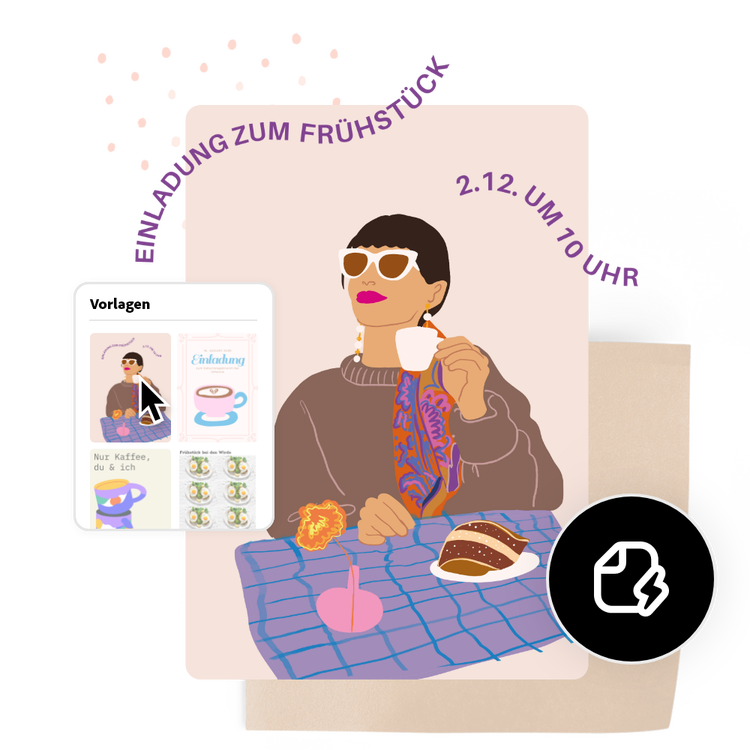 Erstelle Einladungen zum Frühstück in wenigen Minuten.