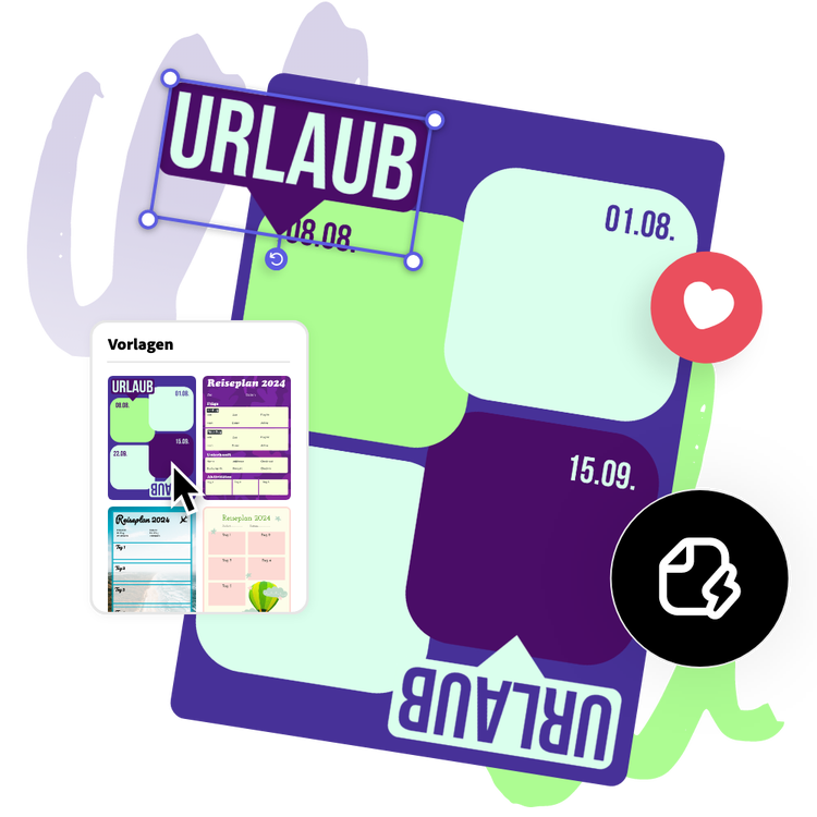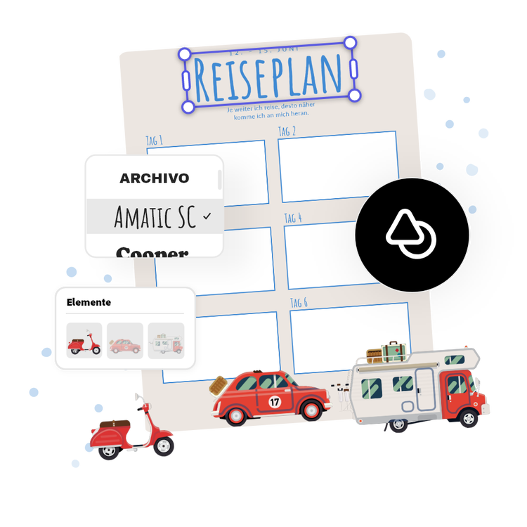 Mit Adobe Express kannst du selbst kreativ werden, ohne erst umfangreiche Bedienungsanleitungen lesen zu müssen. Erkunde unsere Reiseplanvorlagen, während du dich auf dein nächstes Abenteuer vorbereitest, und erstelle deine Reiseroute Schritt für Schritt. Adobe Express ermöglicht den einfachen Zugriff auf deine Reiseplanung, damit du stets organisiert und pünktlich unterwegs bist.