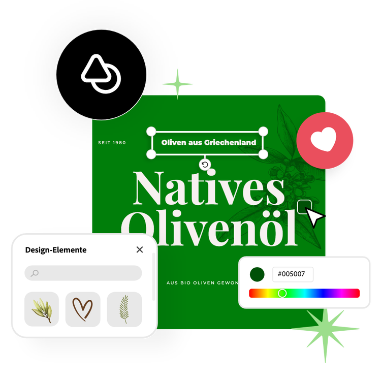 Das Tool von Adobe Express zur Erstellung von Etiketten bietet dir unbegrenzte Anpassungsmöglichkeiten in einer intuitiven, benutzerfreundlichen Anwendung. Ändere Form, Größe, Format, Hintergrund, Spezialeffekte, Text und mehr. Du hast die vollständige Kontrolle über das Design und den Gestaltungsprozess. Wenn du dir nicht sicher bist, was du willst, bietet Adobe Express eine Auswahl professioneller grafischer Arrangements, die du ausprobieren kannst. Und wenn du genau weißt, wonach du suchst, gibt dir Adobe Express die Werkzeuge an die Hand, die du brauchst, um das perfekte Etikett zu gestalten.