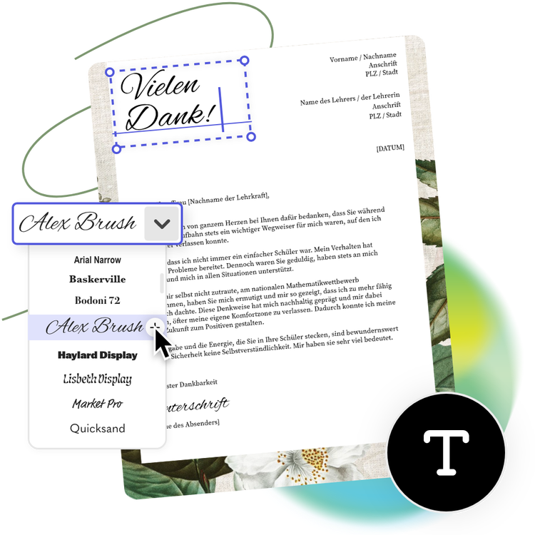 Mit Adobe Express kannst du schnell und einfach ein optisch ansprechendes Bewerbungsschreiben erstellen. So bleibt dir Zeit, dich auf die Jobsuche zu konzentrieren. Du musst nicht mehr umständlich überprüfen, ob dein Text und die Abstände auf einer Seite zusammenpassen. Mit Adobe Express kannst du die Elemente einfach per Drag-and-Drop genau dort platzieren, wo du sie benötigst, ohne technische Beschränkungen. Verbringe mehr Zeit damit, ein überzeugendes Bewerbungsschreiben für deine Leser zu schreiben, und überlasse Adobe Express den Rest.