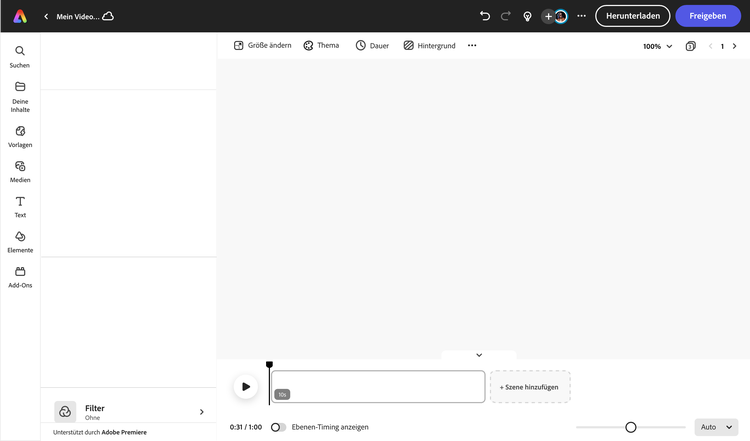 Deine Marke ist ein Unikat, und das sollte auch dein Video-Logo sein. Die Farbpalette, die Typografie und die Grafiken vermitteln wichtige Informationen über deine Marke, und mit Adobe Express kannst du diese Schlüsselsignale prägen. Bei jedem Schritt im Designprozess hast du verschiedene Möglichkeiten und kannst mit verschiedenen Zuschnittsformen, Hintergründen, Farbdesigns und Layouts experimentieren. Genieße die Wahlfreiheit zwischen unzähligen Optionen und entscheide selbst, was das Beste für dein Design ist. Erstelle etwas, das du gerne mit allen und überall teilen möchtest, damit du die Geschichte deiner Marke erzählen kannst. Und denk daran, dein Videologo auch in Zukunft für deine Adobe Express-Designs zu nutzen.