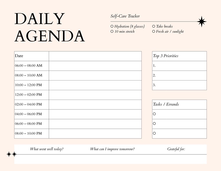 Agenden sind eine hervorragende Möglichkeit, Prioritäten zu skizzieren, hervorzuheben und im Auge zu behalten. In einem Geschäftsumfeld werden diese Tools häufig für Besprechungen verwendet. Sie können den Zweck der Besprechung, die Diskussionspunkte, das Endziel sowie Kontakt- oder Folgedetails detailliert beschreiben. Agenden können auch für den persönlichen Gebrauch bestimmt sein und Ihnen dabei helfen, alle oben genannten Aufgaben täglich oder routinemäßig selbst zu erledigen. Entdecken Sie die Agenda-Vorlagen von Adobe Express, um mit Ihrem Design zu beginnen.