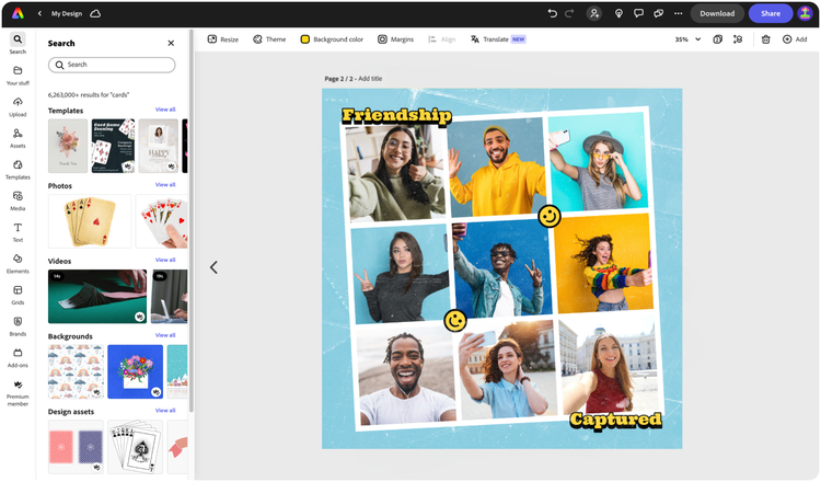 Fügen Sie Ihre eigenen Fotos oder Videos hinzu und beginnen Sie mit der Erstellung. Sie können Ihre PSD- oder KI-Dateien importieren und Adobe Express erkennt alle Ihre Ebenen.