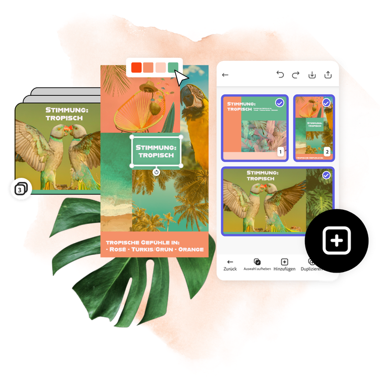 Verwandle jeden Instagram-Post in einen durchgehenden Karussell-Post, mit der Funktion für mehrere Seiten. Füge direkt im Editor Seiten hinzu oder dupliziere sie. Bearbeite mehrere Seiten gleichzeitig und erstelle deine eigenen Vorlagen für mehrere Seiten.