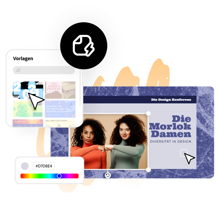 Ganz gleich, ob du eine Präsentation auf einer Konferenz, einer Vorstandssitzung oder vor einem potenziellen Kunden hältst - mit dem Präsentationsgenerator erweckst du deine Botschaft zum Leben. Wähle eine der professionell gestalteten Vorlagen als Ausgangspunkt oder importiere deine PowerPoint-Folien, um sie mit Branding-Assets, hochwertigen Bildern und Videos aus Adobe Stock und leistungsstarken Funktionen der generativen KI anzupassen. Sende deine Präsentation über Freigabelinks an Teammitglieder zur gemeinsamen Bearbeitung und lade sie schließlich herunter. Der Weg zur fertigen Präsentation ist einfach: Vorlage auswählen, anpassen und freigeben.