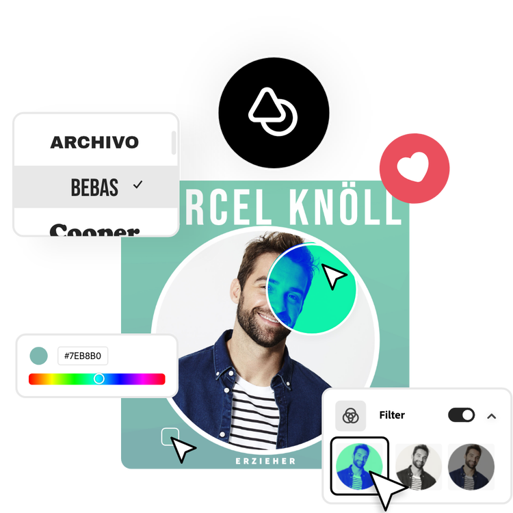 Mit Adobe Express kannst du ganz einfach auffällige, professionelle Profilbilder für Instagram, LinkedIn, Facebook oder TikTok erstellen. Füge ein Logo für ein Geschäftsprofil oder einen Rahmen hinzu, um ein dir wichtiges Anliegen zu unterstützen und in Social Media darauf aufmerksam zu machen. Du kannst dein Design auch auf Flyern und Postern verwenden. Mit diesem PFP-Generator sind die kreativen Möglichkeiten endlos.