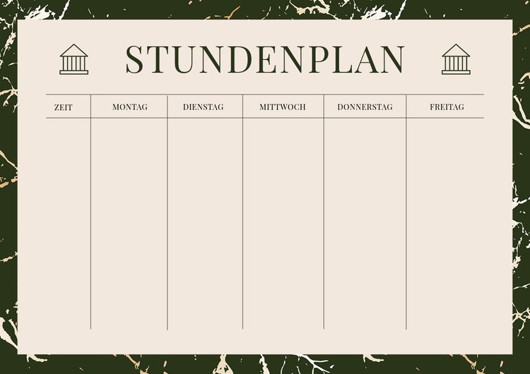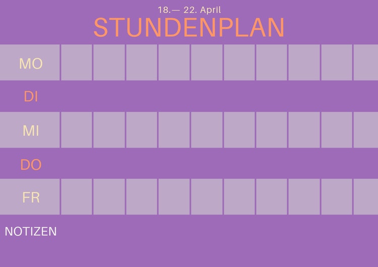 Ein Stundenplan ist wichtig zur Organisation deines täglichen Lebens. Natürlich kann man einen Stundenplan kaufen. Und obwohl diese Pläne auch effektiv sind, wurde keiner ausschließlich für dich und dein Studium an der Uni entworfen. Wenn du jedoch mithilfe eines Programms einen individualisierten Plan erstellst, wirkt sich das positiv auf dein Zeitmanagement aus. Zahllose Stundenplanentwürfe für die Uni und Personalisierungsmöglichkeiten warten auf dich.