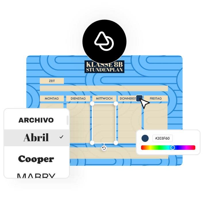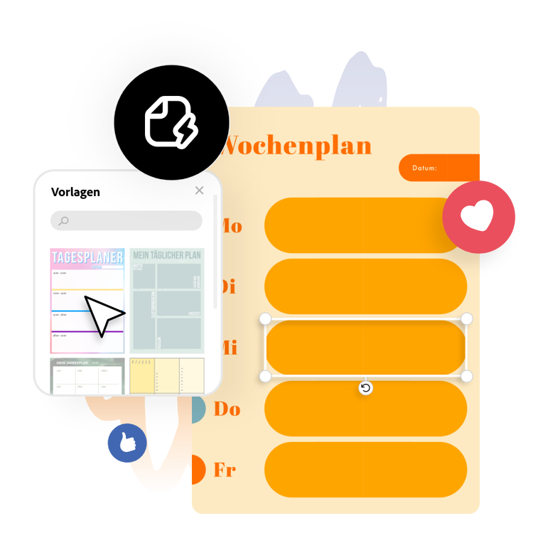 Entdecke professionell gestaltete Vorlagen, um dir Inspiration zu holen oder erstelle deinen Zeitplan von Grund auf neu. Lege ein Thema für deine Entwürfe fest und verwende Fotos, Symbole, Logos, personalisierte Schriftarten und andere individualisierbare Elemente, um sie deinen Bedürfnissen anzupassen. Mit Adobe Express kannst du deine Entwürfe innerhalb weniger Minuten kostenlos und einfach erstellen, speichern und freigeben.