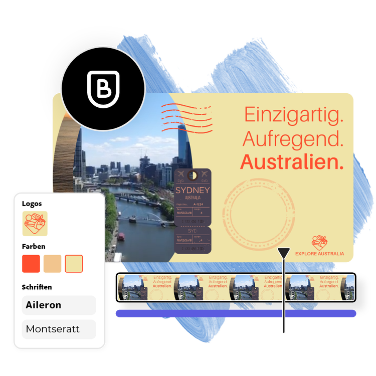 Mit dem Adobe Express-Branding-Tool machst du deine Zuschauer sofort auf deine Marke aufmerksam. Erstelle in Sekunden eigene Branding-Designelemente direkt in deinem Browser und wende sie auf jedes Werbeprojekt an. So entsteht ein einheitliches Erscheinungsbild für alle deine Kampagnenmaterialien. Lade einfach dein Logo hoch und wähle ein Farbdesign und eine Schriftart aus. Du hast kein eigenes Logo? Erstelle dein Logo kostenlos mit Adobe Express.