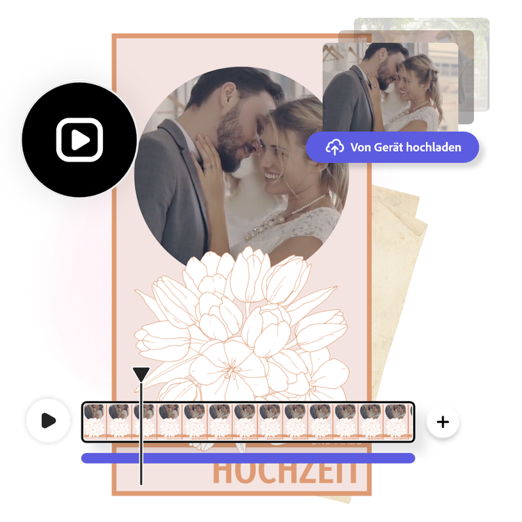 Eine Hochzeit zu planen kann sehr stressig sein, aber das Erstellen eines Videos zum Teilen, muss das nicht ebenfalls sein. Die Drag-and-drop-Funktion im Online-Editor von Adobe Express erlaubt es, direkt all deine Lieblingsfotos und -videos in einem Projekt zu kombinieren. Füge das Farbkonzept deiner Hochzeit zu deinem Video hinzu, zusammen mit mehreren Tausend bezaubernden Schriftarten, die dir zur Verfügung stehen, um die Details deiner Geschichte zu erzählen. Ergänze dein Video mit dem Song eures ersten Tanzes oder wähle aus einer Vielzahl von lizenzfreien Adobe-Stock-Soundtracks, um dein Video wahrlich zeitlos zu gestalten.