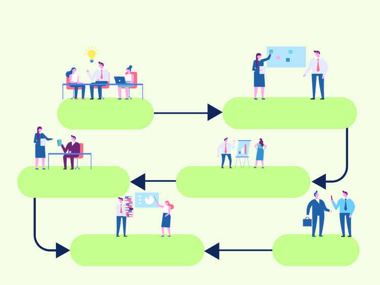 Lies weiter, um Beispiele für Prozessdiagramme nach Branchen kennenzulernen und Tipps zum Erstellen effektiver Prozessdiagramme mit Adobe Express zu erhalten.