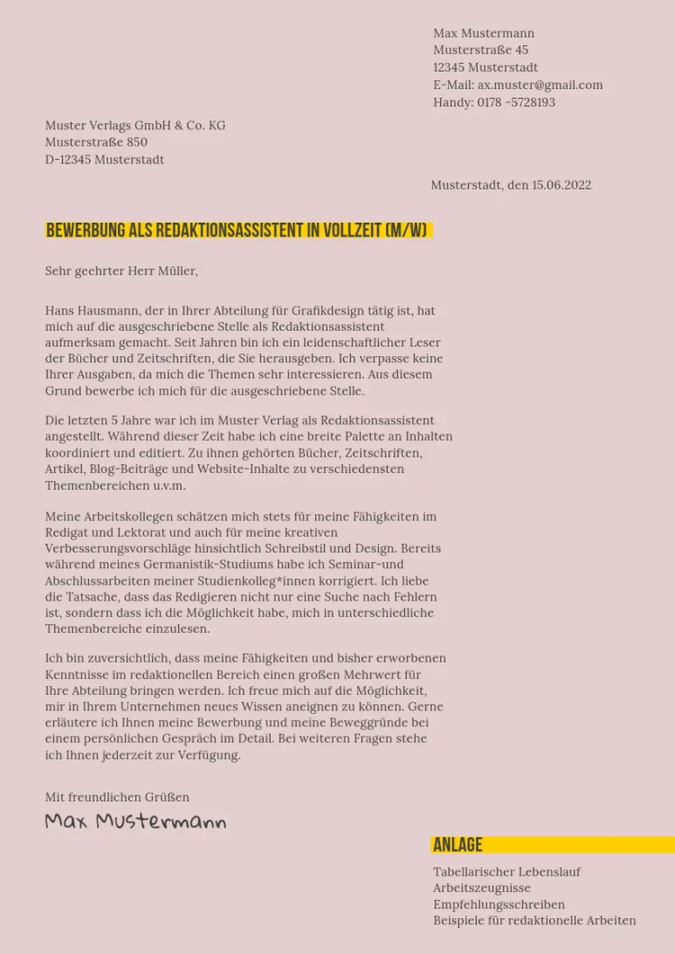Tipp: Sende dein Anschreiben immer als PDF, nicht als Word-Dokument. So bleibt dein Layout erhalten und zeigt, dass du dir Gedanken über die Präsentation gemacht hast.