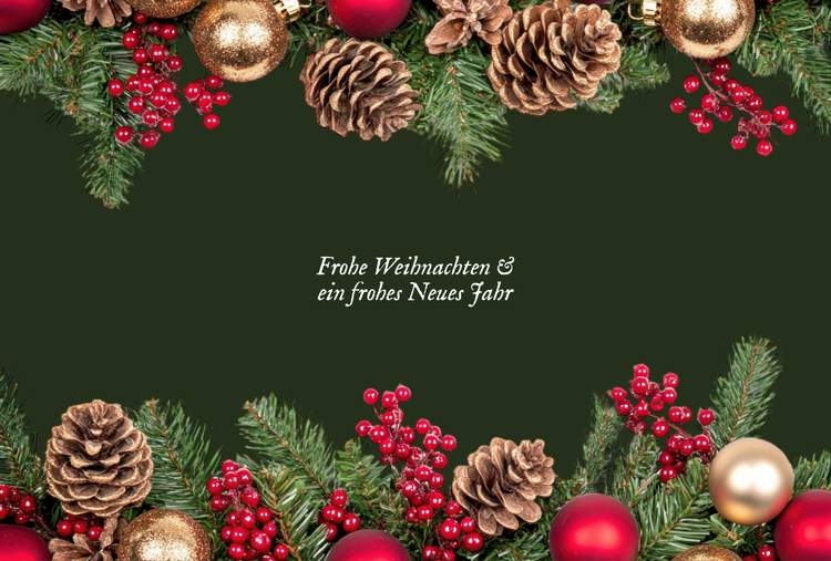 Du kannst festliche Grüße, eine kurze persönliche Nachricht, dein Geschäftslogo oder deine Unterschrift oder festliche Fotos einfügen – ganz, wie es zu dir passt. Je nach deiner Beziehung zur jeweiligen Person kannst du auch Kontaktdaten, Social-Media-Profile oder sogar ein spezielles Weihnachtsangebot hinzufügen.