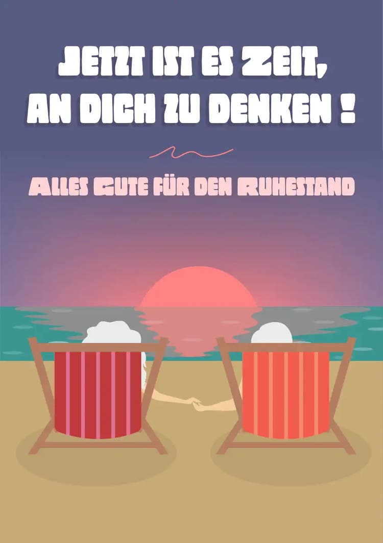 40 Glückwünsche und Zitate zum Ruhestand – jetzt hast du genug Material, um deine Wünsche zum Ruhestand in die passende Form zu bringen! Bei Adobe Express findest du viele verschiedene kostenlose Vorlagen für Karten oder digitale Grüße zum Ruhestand. Melde dich einfach an, wähle eine passende Vorlage aus, füge deine Wünsche zum Ruhestand hinzu und personalisiere die Karte nach deinen Vorstellungen – mit Bildern, kreativen Designelementen oder einem Bürofoto als Karten-Hintergrund. Im Anschluss kannst du dein Design herunterladen und ausdrucken oder digital versenden. So wird dein*deine Kolleg*in seinen*ihren Abschied in den Ruhestand bestimmt nicht so schnell vergessen.