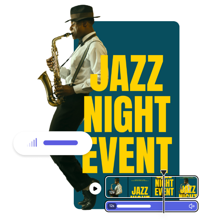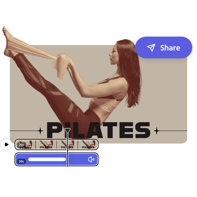 Nachdem du deinen Einblend-Audioeffekt in der Vorschau abgespielt und perfektioniert hast, bearbeite dein Projekt in Adobe Express weiter, bis es fertig ist. Füge zusätzliche Szenen hinzu, schneide das Audio zu oder spiele mit Animationen. Die Möglichkeiten sind endlos.