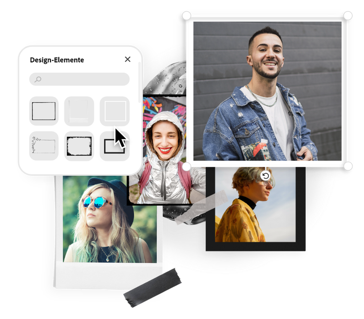 Lade ein Bild von deinem Gerät hoch oder wähle ein kostenloses Adobe Stock-Foto aus, um es in deinem Projekt zu präsentieren.