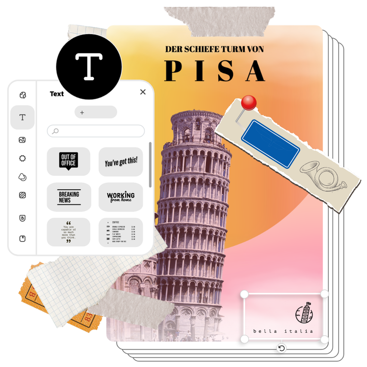 Füge deinen Texten, Icons, Formen und anderen Elementen Animationen hinzu oder bearbeite deine Kreation weiter. Lade dein neues Fotoprojekt mit Text als PNG-Datei zum Speichern und Teilen herunter.