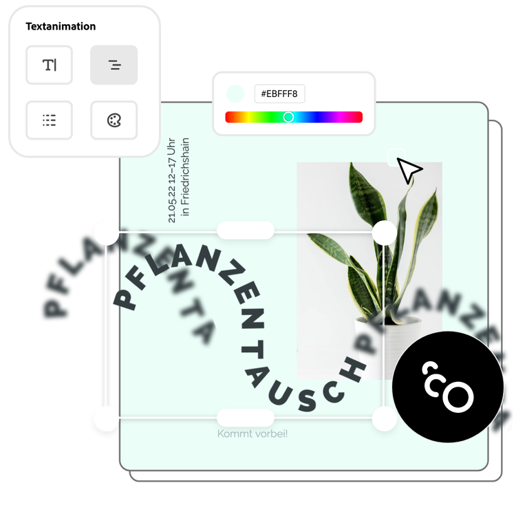 Beeindrucke dein Publikum, indem du eine Textanimation in dein Design einbindest. Wähle aus den Textanimationsoptionen von Adobe Express den Effekt aus, der zum Konzept deines Gesamtbildes passt.