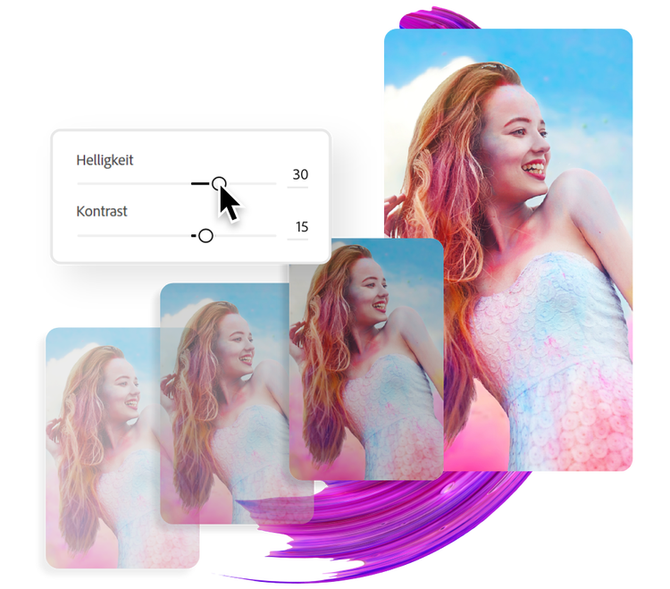 Das Online-Bildbearbeitungsprogramm Adobe Express bietet unendlich viele Möglichkeiten zum Bearbeiten und Personalisieren. Verschönere dein Foto: Dutzende von Fotofiltern stehen zur Auswahl. Oder du verleihst deinem Design eine neue Dimension, indem du neue Ebenen mit auffälligem Text oder interessanten Grafiken hinzufügst.
