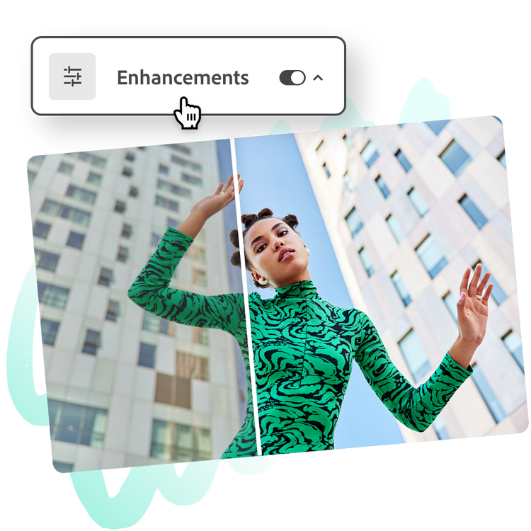 Mit Adobe Express kannst du innerhalb von Minuten Bilder in hoher Qualität bearbeiten. Probiere die Funktion zum Verbessern von Bildern und die anderen Bearbeitungsoptionen aus, um deinen individuellen Stil zu entwickeln. Öffne einfach Adobe Express, und schon kannst du mit der Erstellung beeindruckender und publikumswirksamer Designs beginnen. Deine kreativen Möglichkeiten sind endlos.