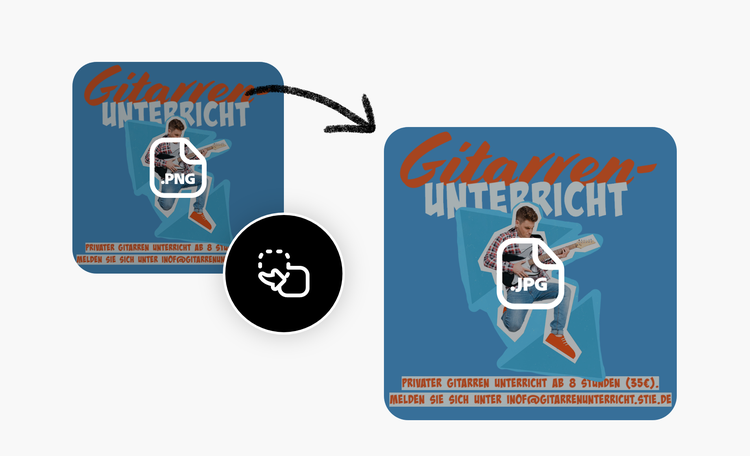 Das Bildformat JPG ist im Internet und bei Betriebssystemen am weitesten verbreitet. Aus gutem Grund: Es komprimiert Bilddateien, ohne die Bildqualität zu beeinträchtigen. Mit Adobe Express ist die Umwandlung von PNG in JPG mühelos möglich. Lade einfach dein PNG hoch; der Foto-Converter stellt dein JPG in kürzester Zeit zum Download bereit. Wenn du dein Bild in ein kleineres JPG-Format umgewandelt hast, kannst du es ganz einfach hochladen, teilen und in E-Mails, auf Websites und Social-Media-Plattformen zum Download bereitstellen.