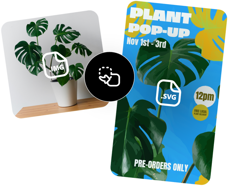 Nutze den SVG-Converter kostenlos von Adobe Express und du kannst jedes beliebige JPG- oder PNG-Bild hochladen und in wenigen Sekunden in eine SVG-Datei umwandeln.