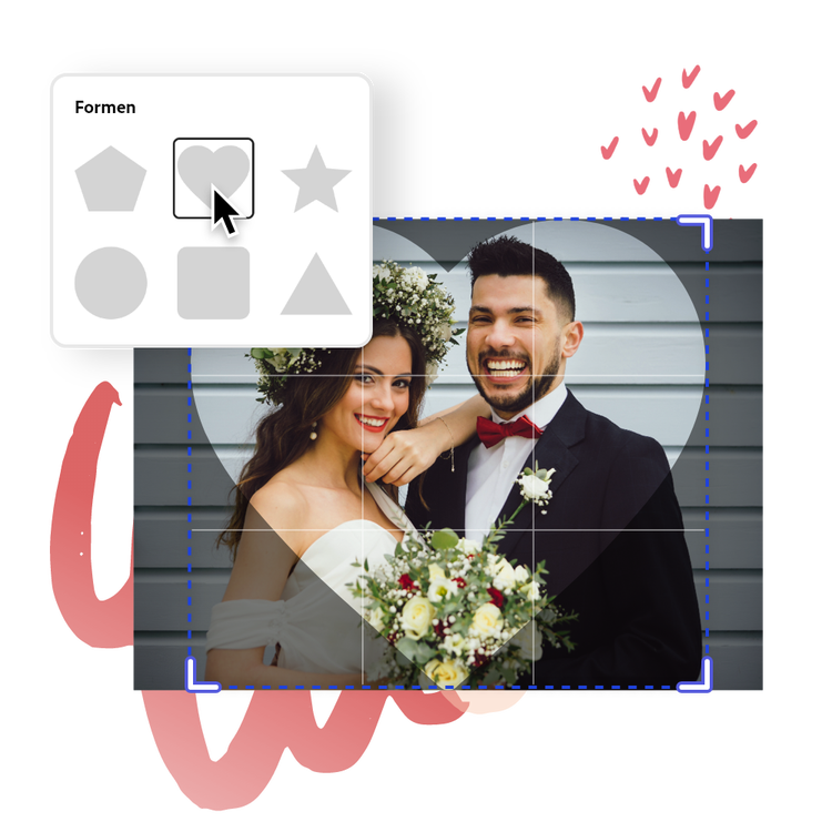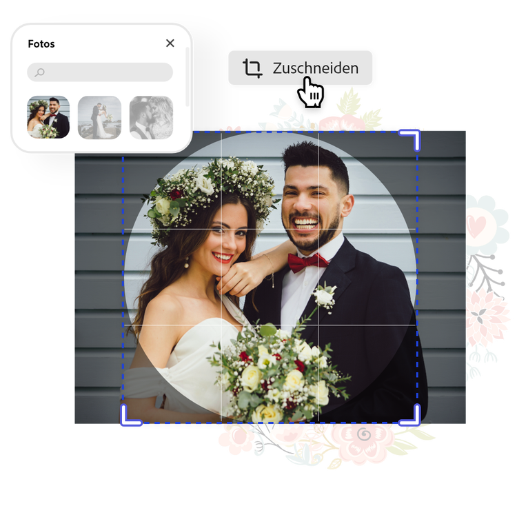 Erstelle Formen mit dem Tool „Zuschneiden und Formen“, damit deine Bilder in deinem Design zur Geltung kommen. Wähle zuerst das gewünschte Bild und dann das Tool „Zuschneiden und Formen“ aus, um dein Bild rund auszuschneiden.