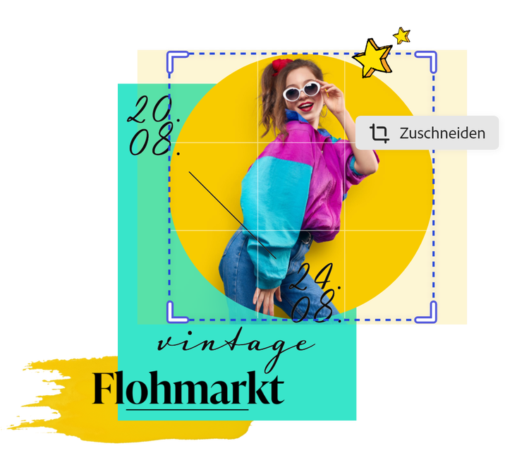 Die Kreisausschnittfunktion von Adobe Express verwandelt deine Bilder in beeindruckende Designs.