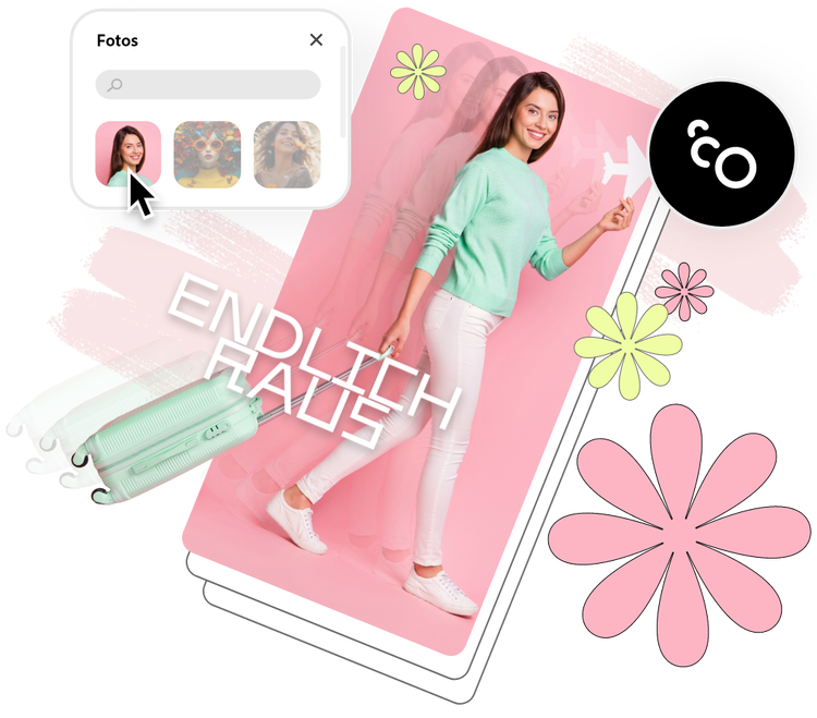 Wähle dein Foto aus, füge Icons, Text und Grafiken hinzu und spiele dann mit den Animationsoptionen, um deinem Design Lebendigkeit zu verleihen.