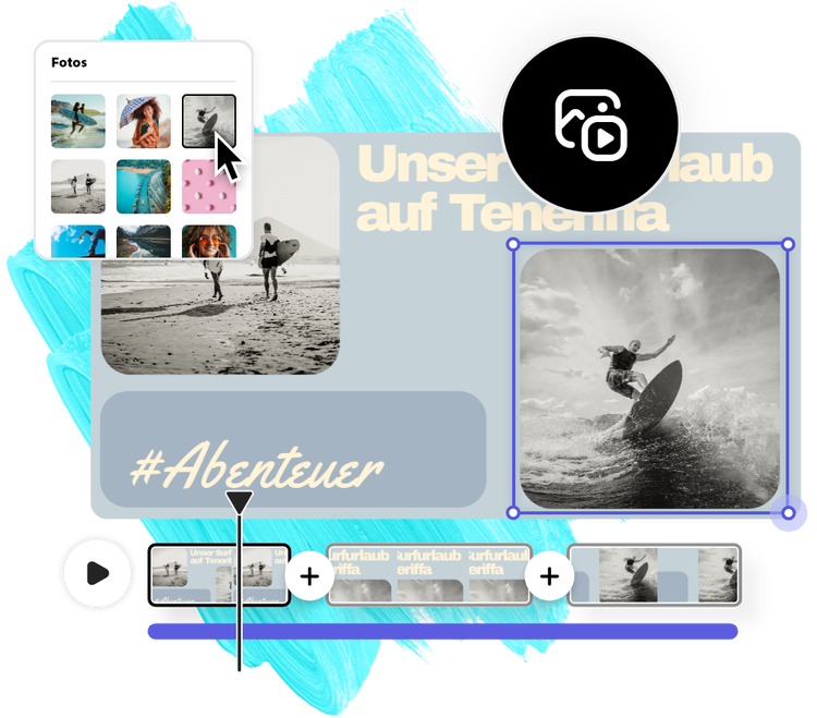 Erstelle anhand von Fotos oder Frames aus deinem Projekt neue Video-Clips, die nahtlos mit dem vorhandenen Footage verschmelzen.