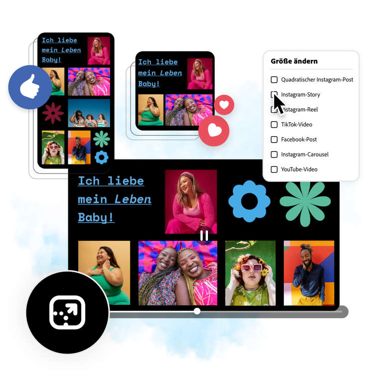 Je nachdem, für welche Kanäle du hauptsächlich gestaltest, kannst du horizontale oder vertikale Videos erstellen. Einfach perfekt, um ohne Extraaufwand zwischen Social Media, Web und Breitbild zu wechseln.